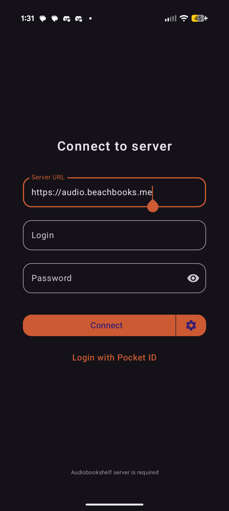https://audio.beachbooks.me 2. Hit Login with Pocket ID at the bottom of the screen.
